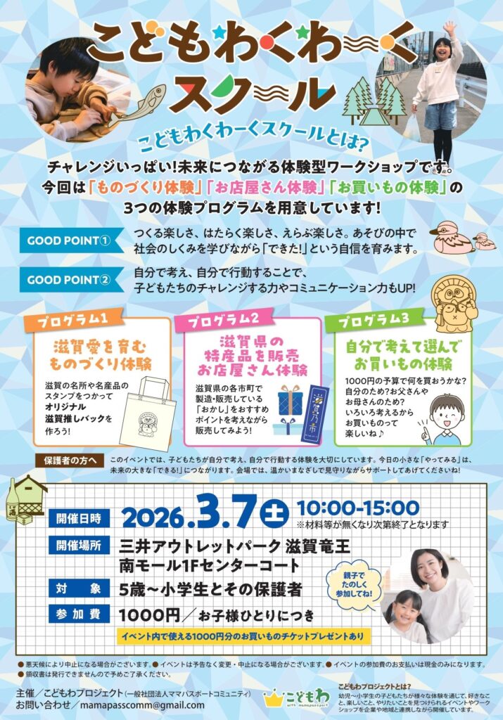 「ものづくり・売る・買う」が楽しめるプログラム「わくわーくスクール」も同時開催!